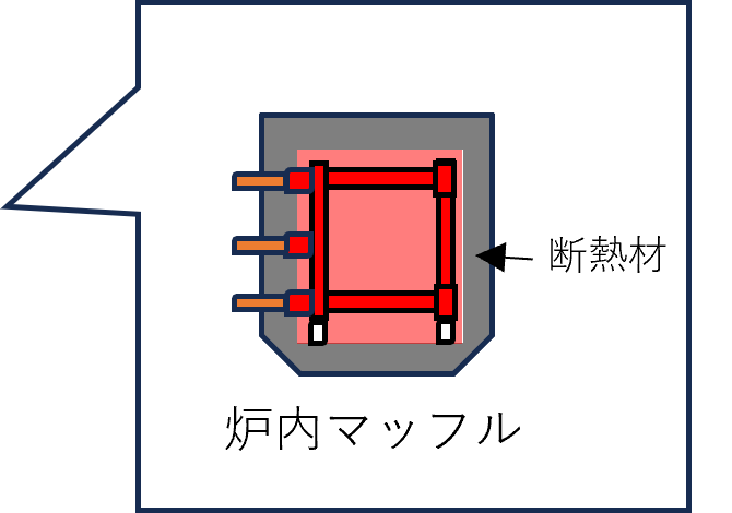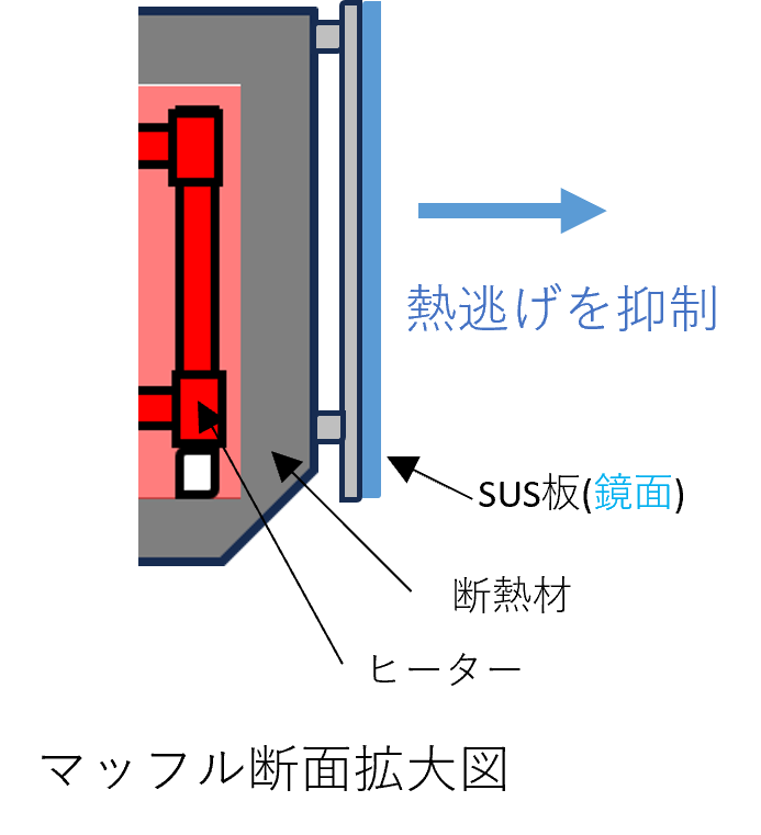 マッフルから炉壁に向けた輻射熱をステンレス(SUS)鏡面板で抑制