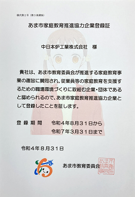 あま市家庭教育推進協力企業に登録されました