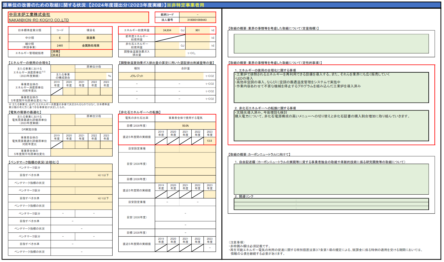 省エネ法定期報告情報の開示制度に基づき、開示シートを公表します。
