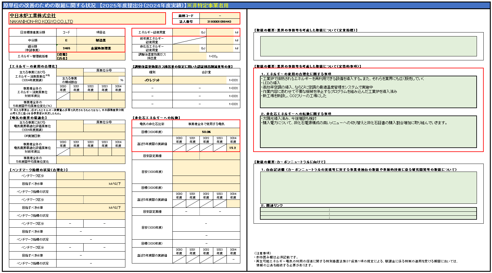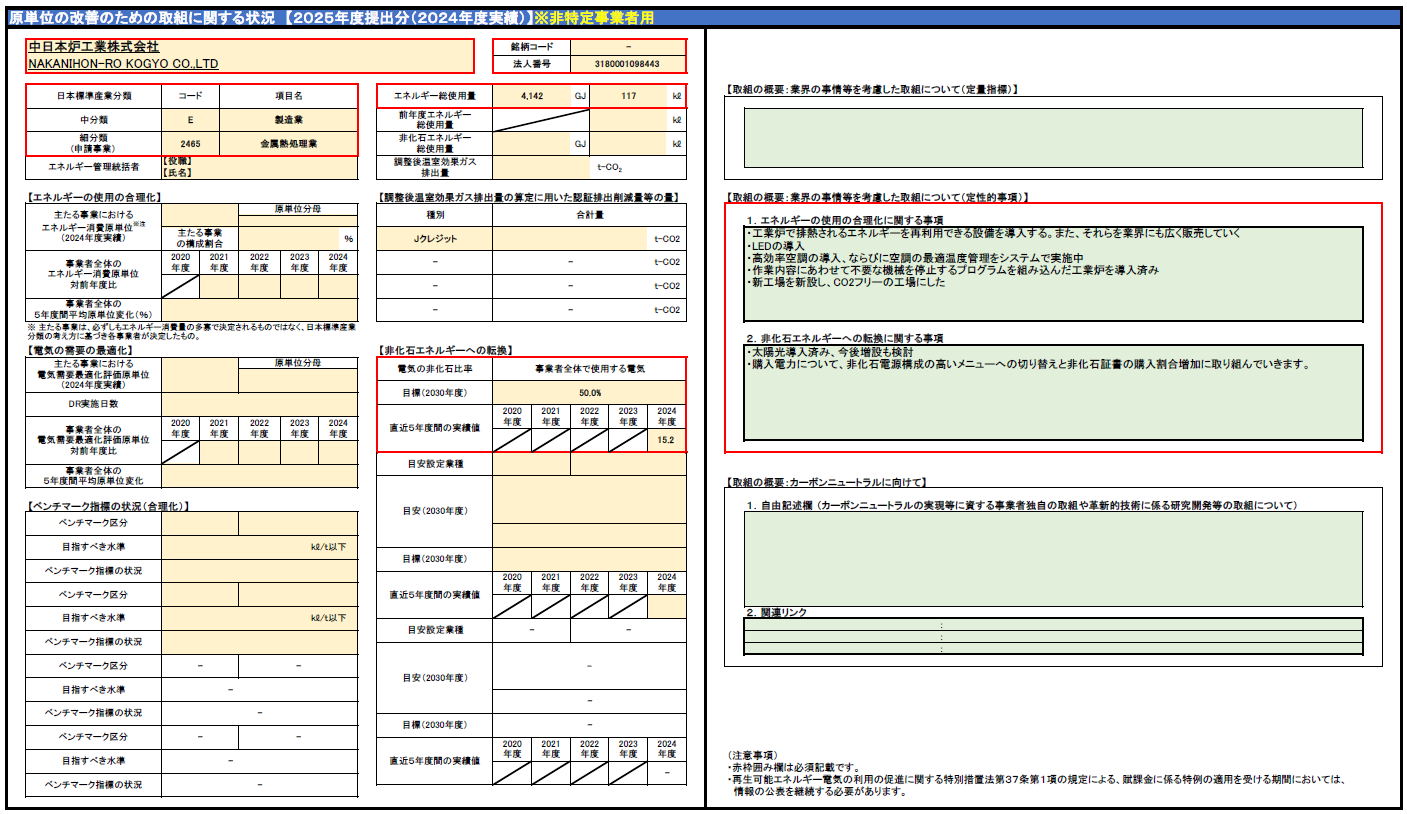原単位の改善のための取り組みに関する状況